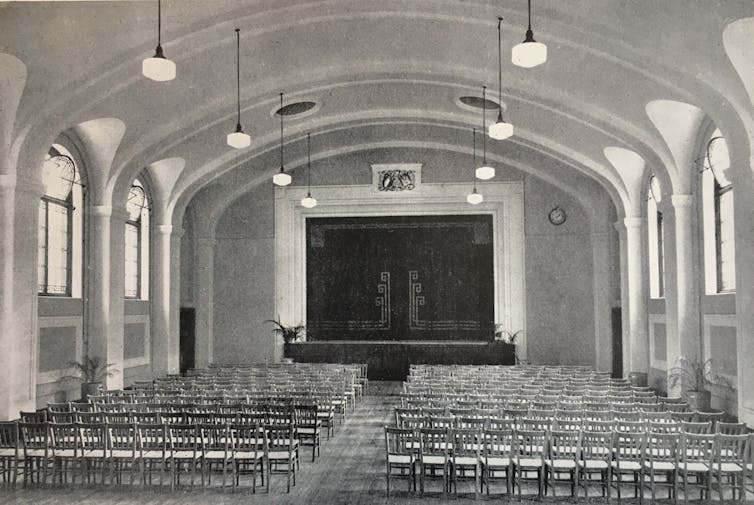 At the guts of Cefn Coed Hospital was the William Owen Hall, an ornate and formal entertainment venue that would accommodate as much as 600 patients for meals, musical performances and dancing, and which also had its own projection room.